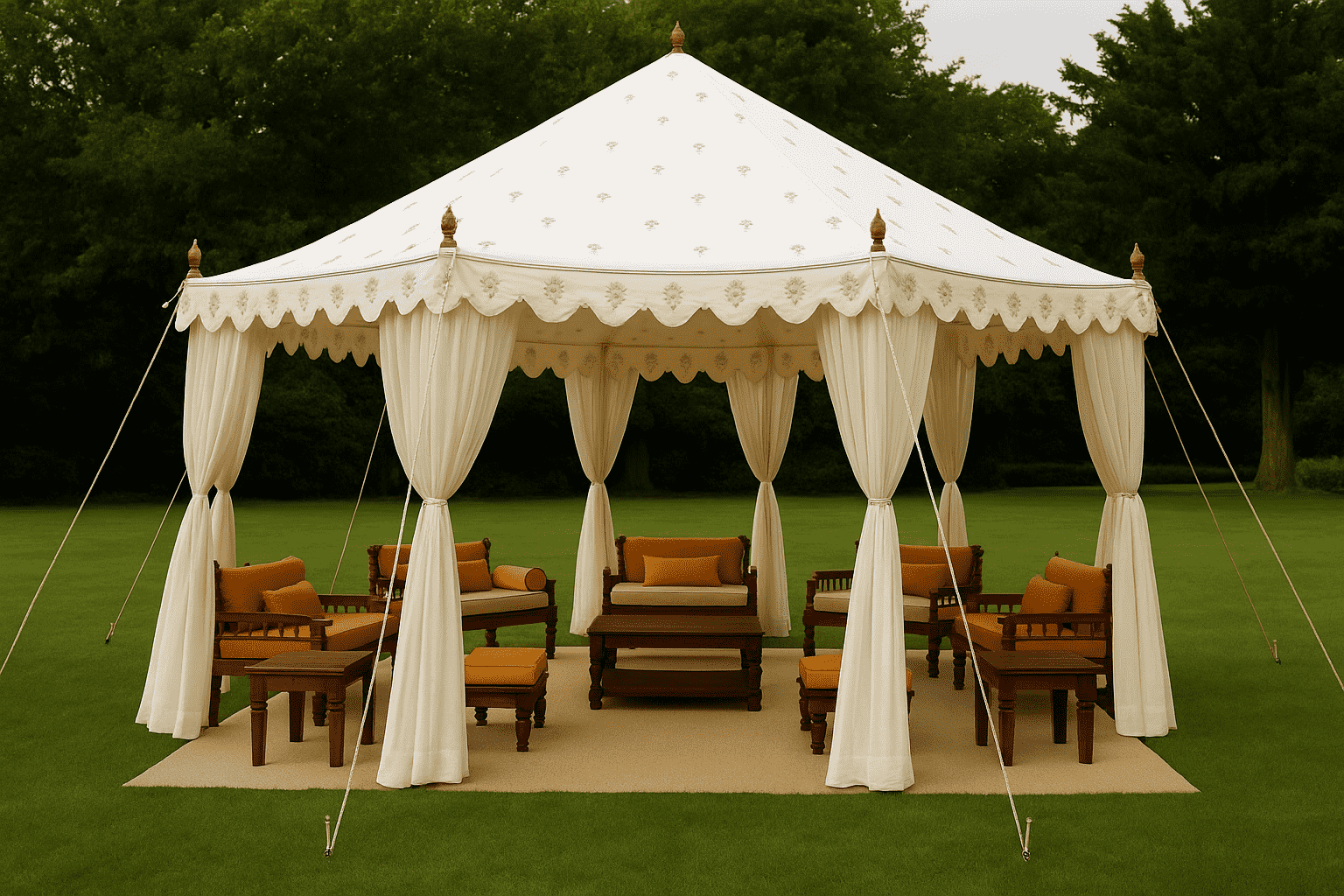 Every Raj Pavilion Tent is a reflection of heritage, design, and quality. Whether you’re hosting a wedding, running a heritage hotel, or planning a majestic outdoor celebration, our tents offer a unique blend of traditional artistry and modern durability.